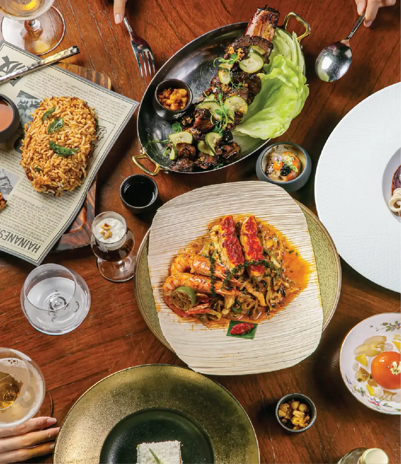 7-Courses | $168++ per guest. In the spirit of Majulah Singapura, enjoy $60++ off when dining as a party of two, making this seven-course communal menu even more special.